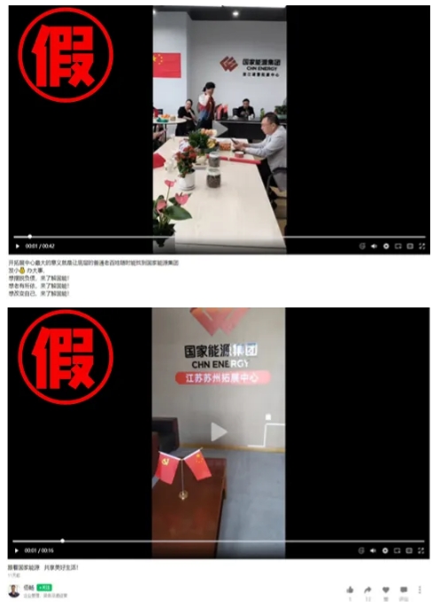 中新网6月3日电 据“国家能源之声”微信公众号消息,国家能源集团发布严正声明称,近期,发现有不法分子假冒国家能源集团在全国多地设立所谓“拓展中心”,涉嫌从事违法活动,并通过抖音、微信视频号等网络平台进行虚假宣传。