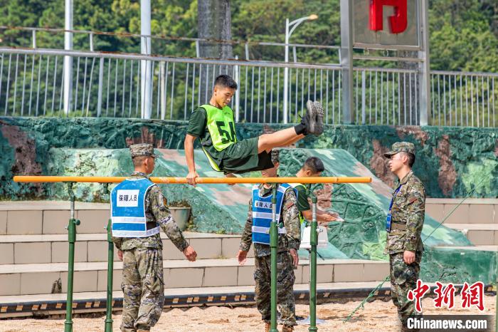 图为武警官兵正在进行抓绳上训练。刘明 摄