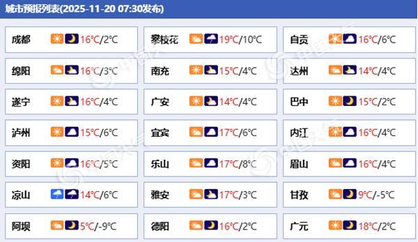四川各城市今日天气预报。(来源:中国天气网)