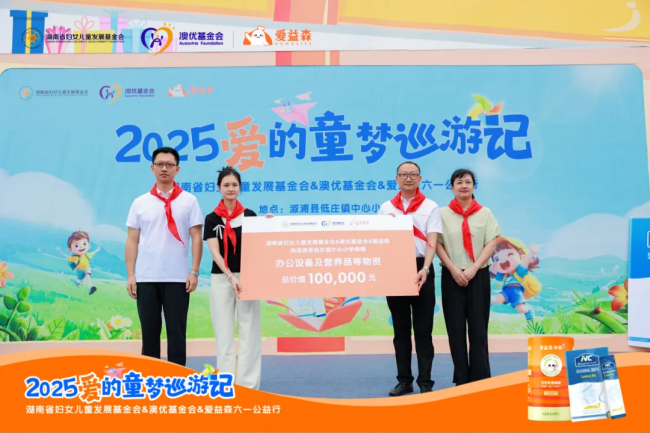 5月28日,“六一”儿童节前夕,澳优基金会联合湖南省妇女儿童发展基金会,并携手澳优旗下婴童营养品牌爱益森,走进湖南怀化溆浦县低庄镇中心小学开展“2025爱的童梦巡游记”六一公益行活动,为低庄镇中心小学14个教学点及学生捐赠爱心物资。这也是澳优第四年在儿童节到来之际开展公益助学活动,助力乡村教育事业发展。