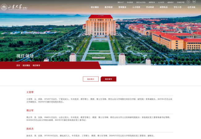 近日,山东大学青岛校区官网更新信息显示,王美琴已兼任青岛校区校长。